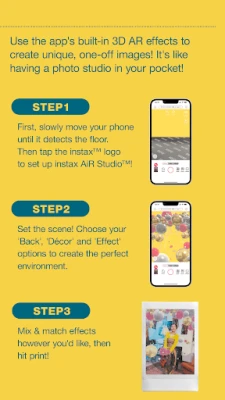 ยกระดับประสบการณ์การถ่ายภาพให้สนุกยิ่งขึ้นด้วย instax Camera ที่ให้คุณควบคุมกล้องสมาร์ทโฟนจากระยะไกลได้ง่ายๆ เพียงใช้ปุ่มเปิดปิดบนเครื่องพิมพ์เป็นชัตเตอร์! และสำหรับผู้ที่รักการตกแต่ง instax AiR Studio พร้อมเปลี่ยนพื้นที่รอบตัวให้กลายเป็นผืนผ้าใบ AR สุดพิเศษ ให้คุณประดับตกแต่งด้วยคอนเทนต์ AR ที่ชื่นชอบ และถ่ายภาพเก็บช่วงเวลาแห่งความสนุกได้ทุกที่ทุกเวลา หรือจะสนุกไปกับ Click to Collage สัมผัสประสบการณ์เหมือนอยู่ในตู้ถ่ายรูป ให้คุณถ่ายภาพต่อเนื่องถึงหกภาพในช่วงเวลาสามวินาทีต่อภาพ พร้อมนับถอยหลัง 3, 2, 1... แล้วยิ้มให้สุดเหวี่ยง! หรืออยากรู้ว่าใครคือคู่แท้ของคุณ? ลองทำ Match Test เพื่อค้นหาคำตอบได้เลย!