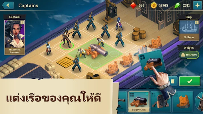 หัวใจสำคัญของการพิชิตมหาสมุทรใน Pirate Ships คือความสามารถในการปรับแต่งและสร้างสรรค์เรือรบของคุณ ตั้งแต่เรือใบลำเล็กๆ ที่คุณช่วยชีวิตมา ไปจนถึงเรือประจัญบานขนาดมหึมาที่พร้อมทำลายล้าง รวบรวมชิ้นส่วน ปืนใหญ่ และอุปกรณ์อันหลากหลาย เพื่อประกอบเรือในแบบที่เป็นเอกลักษณ์เฉพาะตัวของคุณ ค้นพบการผสมผสานกลยุทธ์ที่ดีที่สุดเพื่อเพิ่มประสิทธิภาพและพลิกเกมในการต่อสู้ เตรียมพร้อมที่จะอัปเกรดและเสริมความแข็งแกร่งให้กับเรือของคุณอย่างต่อเนื่อง เพื่อรับมือกับทุกความท้าทาย